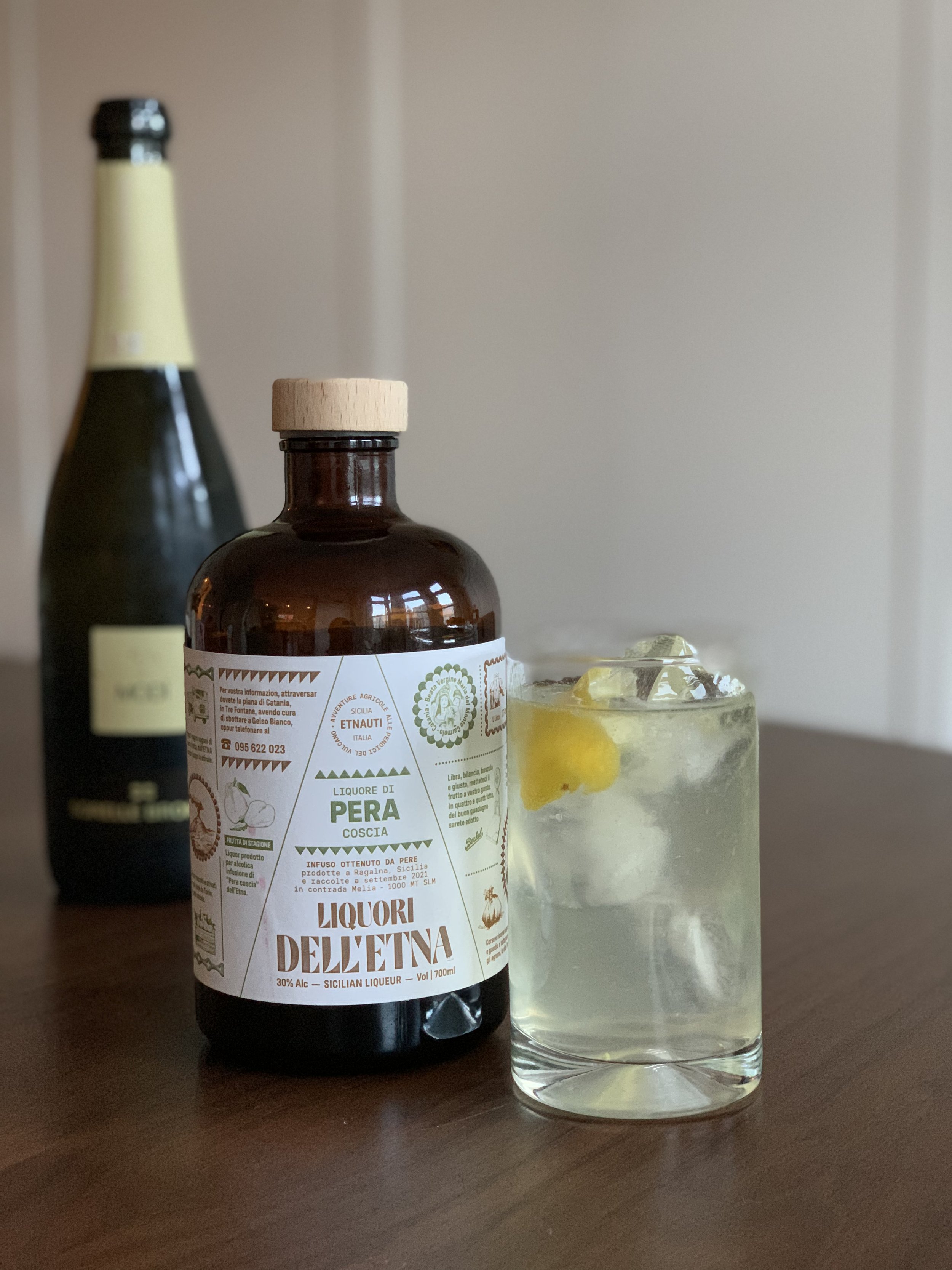 Shake Pera, Finochietto and lemon over ice. Strain into collins or wine glass. Top with ice, soda, prosecco and garnish with lemon twist.